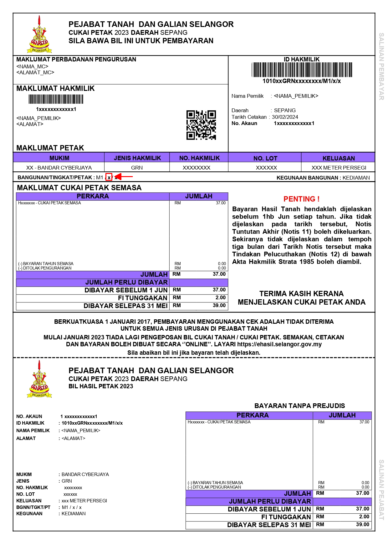 SEMAKAN DAN BAYAR BIL CUKAI TANAH/PETAK