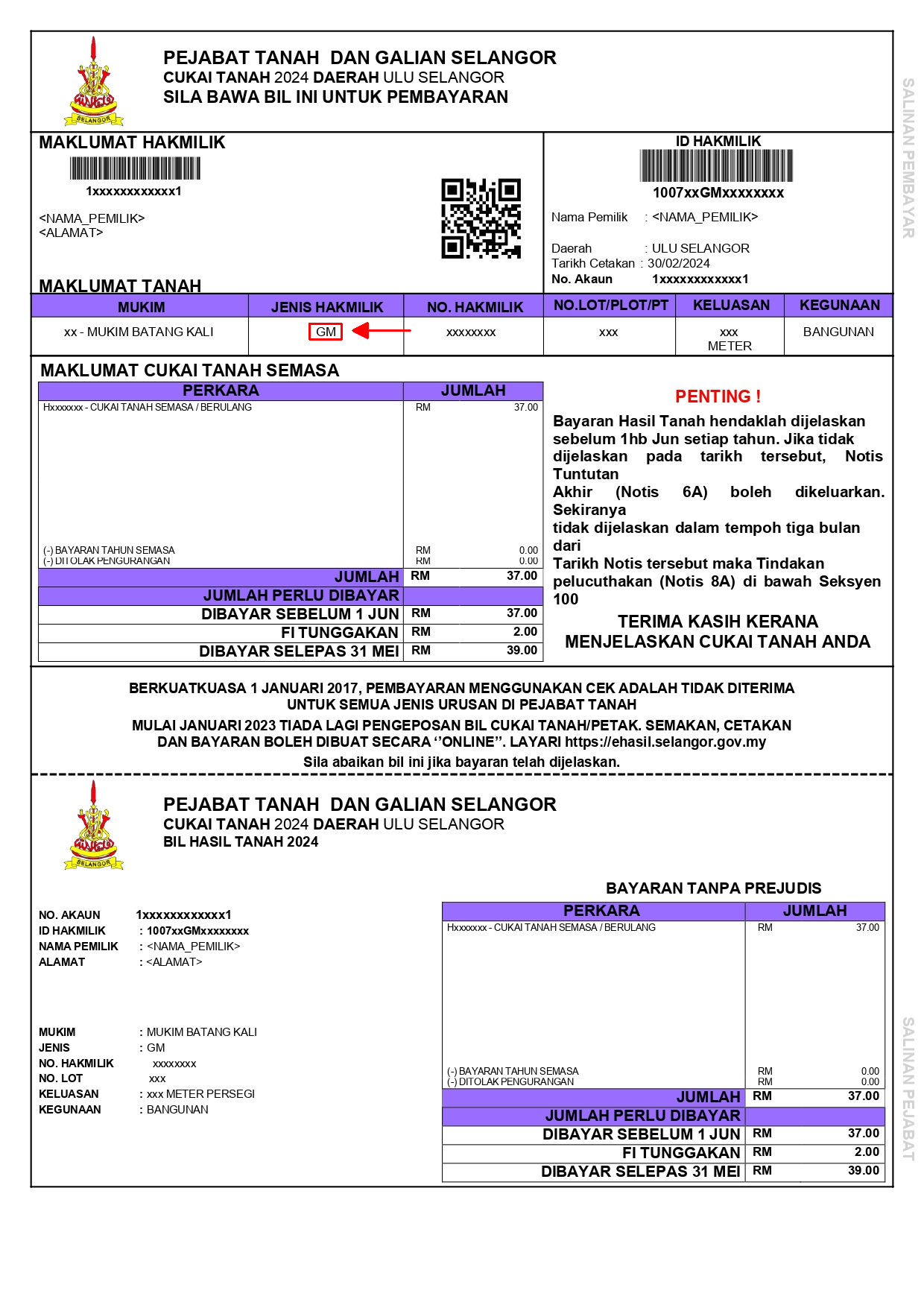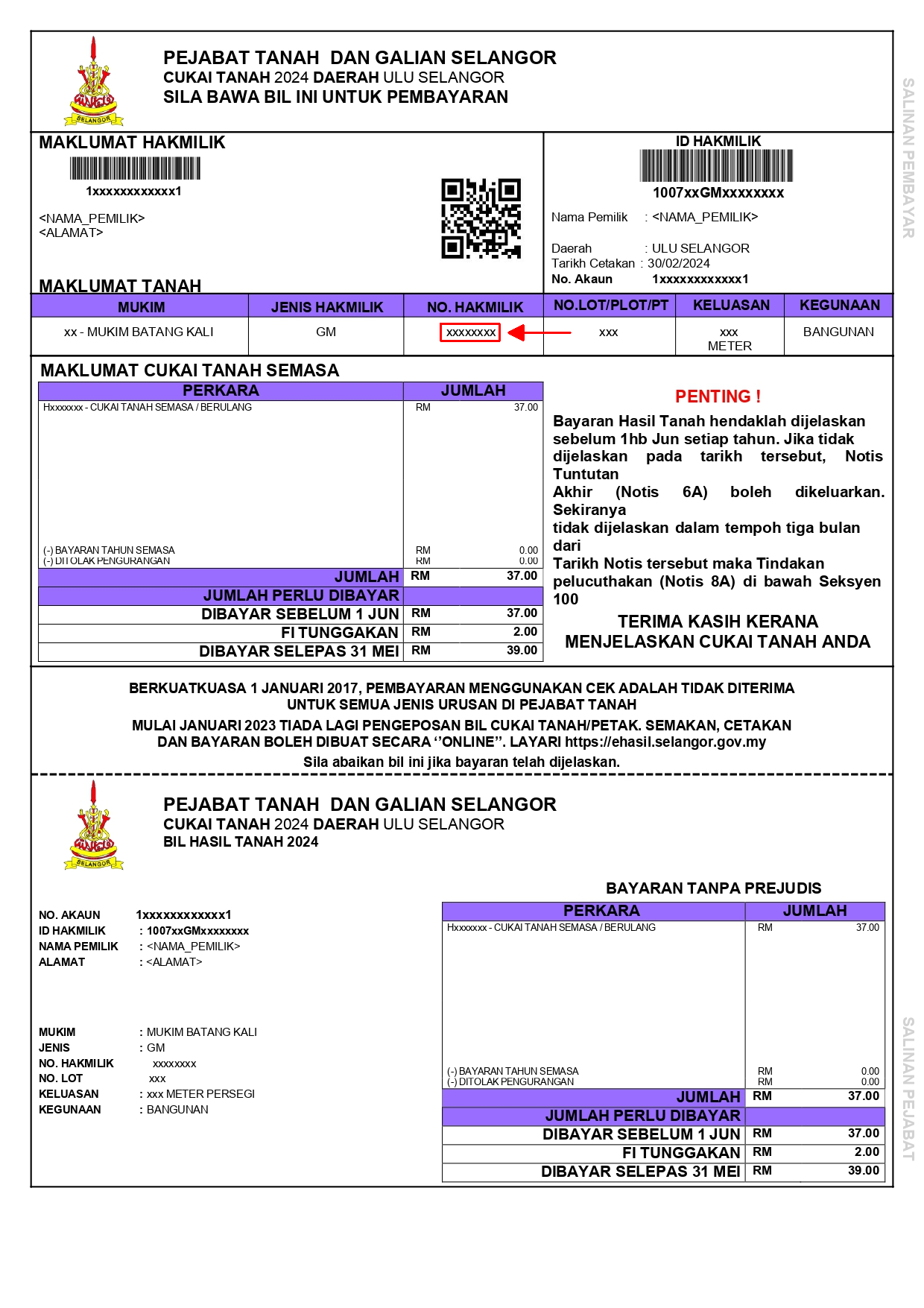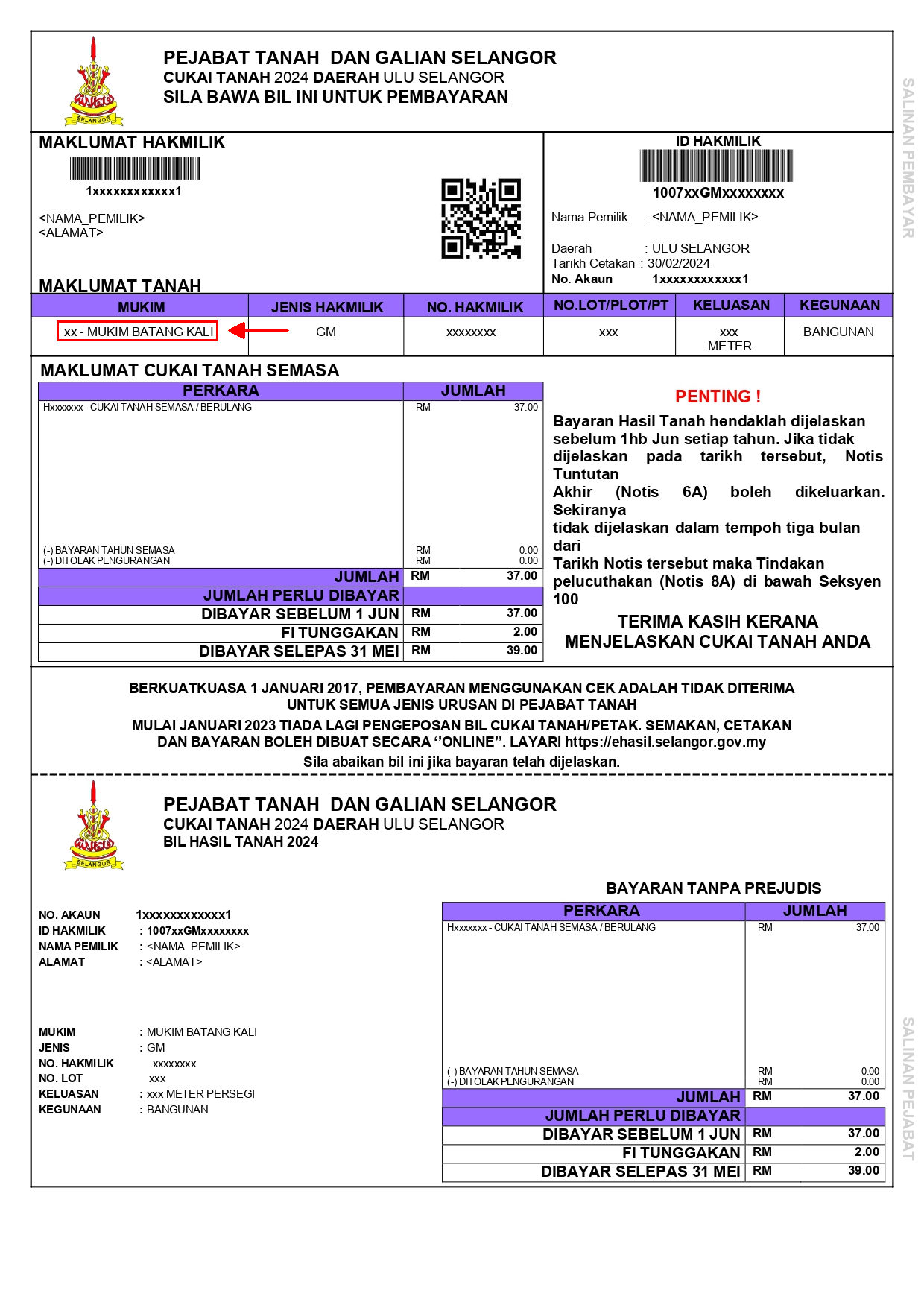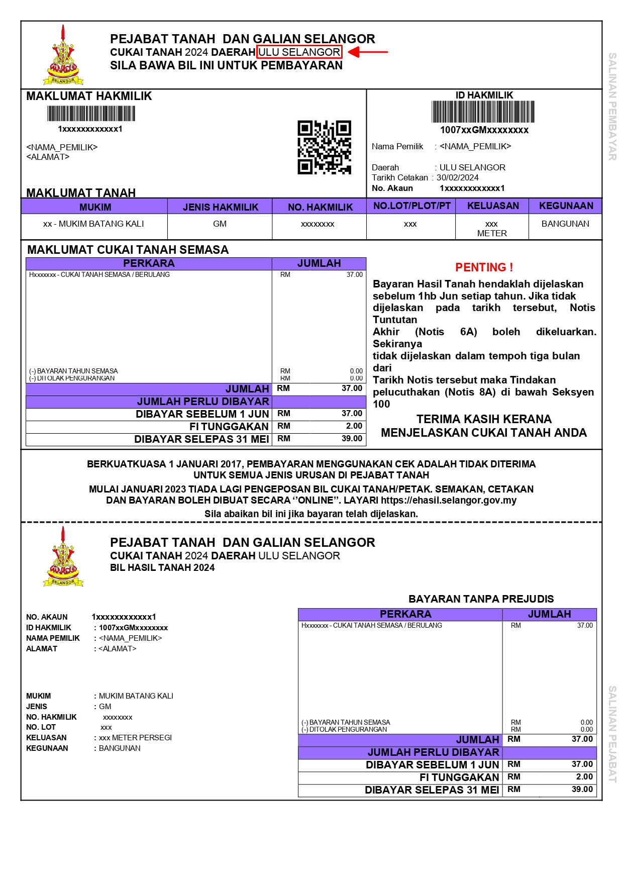Walau bagaimanapun, pemilik tanah di negeri Selangor masih boleh membuat pembayaran cukai tanah secara Kad Kredit / Kad Debit / Kad Amex melalui eBayaran ataupun Perbankan Internet melalui Maybank2U, CimbClicks, RHB dan juga Pos Online.